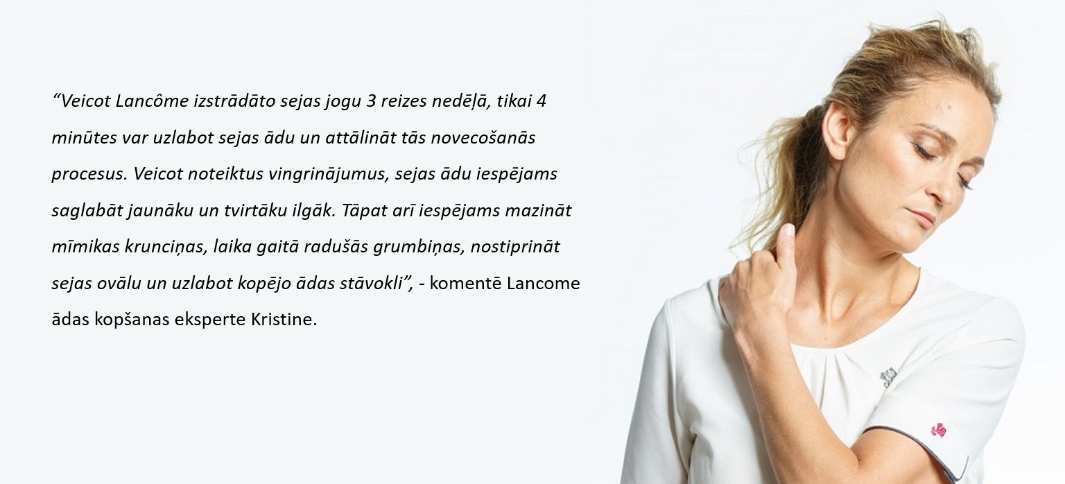 “Rudenī mana āda kļūst sausa un blāva, tāpēc es cenšos ievērot ikdienas ādas kopšanas rituālus mājās. Viens no svarīgākajiem soļiem ir ādas mitrināšana. Jau vairākus gadus lietoju serumu Lancome Advanced Génifique, kas lieliski mitrina ādu un piešķir tai mirdzumu. Šis ir mans mīļākais ikdienas serums.”