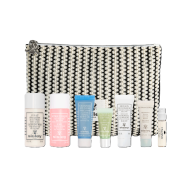 kosmētikas maku ar produktu miniatūrām.