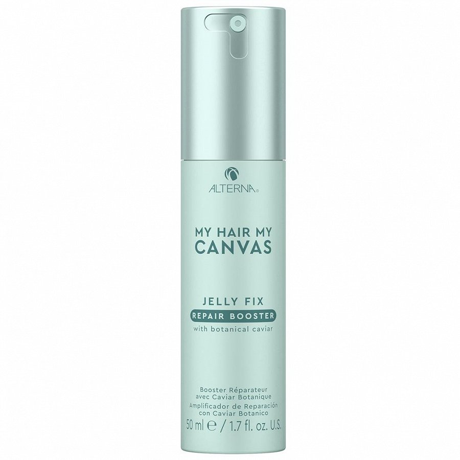 ALTERNA MHMC Jelly Fix Repair Booster augstas koncentrācijas, vegānisks želejveida matu stiprinātājs, kas palīdz novērst ārējās vides piesārņojuma ietekmi uz matiem, novērš matu lūšanu, atvieglo ieveidošanu un saglabā dabisku gludumu un mirdzumu. Bagātināts ar vegānu botānisko kaviāru, balto ogli un jaunajām Blue Light un Repair Complex formulām. Produktu var jaukt kopā ar My Hair. My Canvas. masku vai kondicionieri.