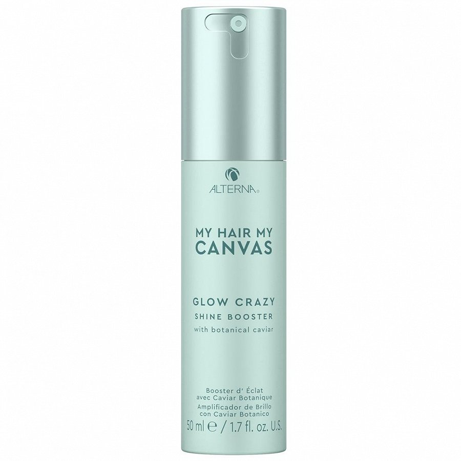 ALTERNA MHMC Glow Crazy Shine Booster augstas koncentrācijas, silikonu nesaturošs, vegānisks želejveida matu stiprinātājs, kas nodrošina lielisku un noturīgu spīdumu līdz pat 10 mazgāšanas reizēm, kā arī uztur matu mitruma līmeni, sniedz gludumu un atvieglo ieveidošanu. Produkts ir bagātināts ar vegānu botānisko kaviāru, opuncijas eļļu un JAUNO mirdzuma kompleksu. Produktu var jaukt kopā ar My Hair. My Canvas. masku vai kondicionieri.