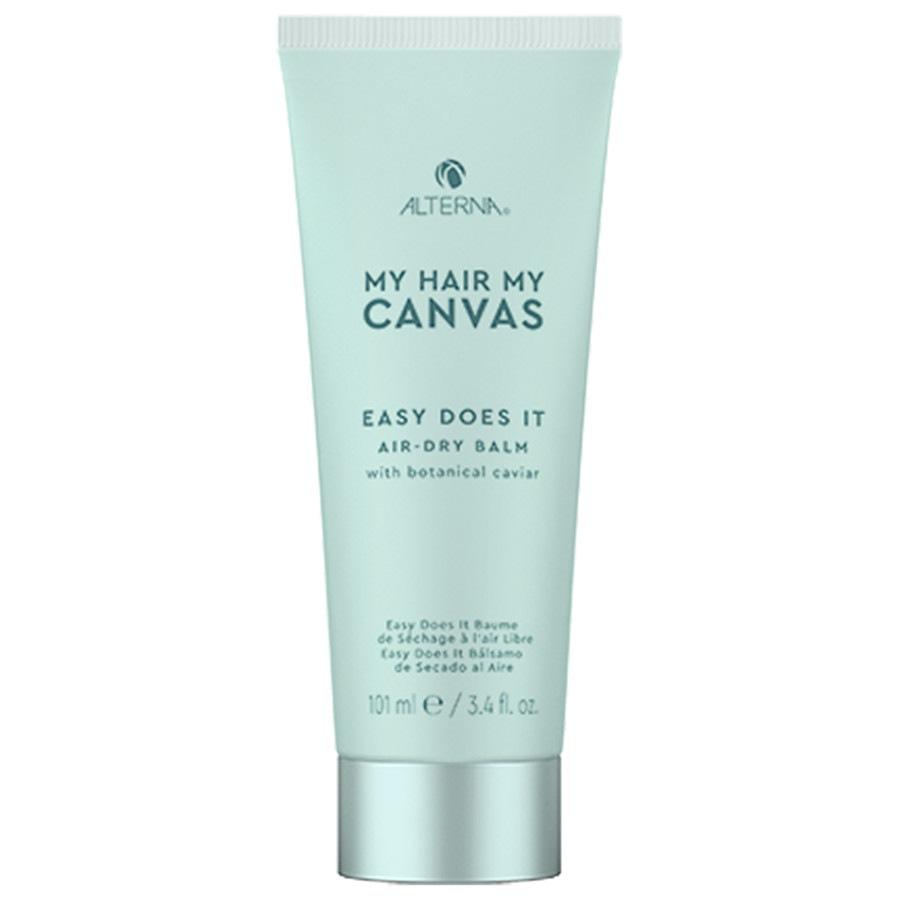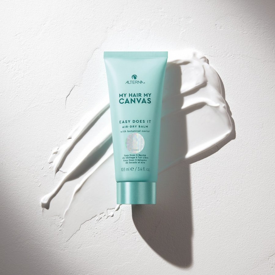 ALTERNA My Hair My Canvas Easy Does It Air-Dry Balm vegāns, viegls spurošanos kontrolējošs balzams, kas palīdz izcelt dabisku matu sakārtojumu bez karstuma apstrādes.
