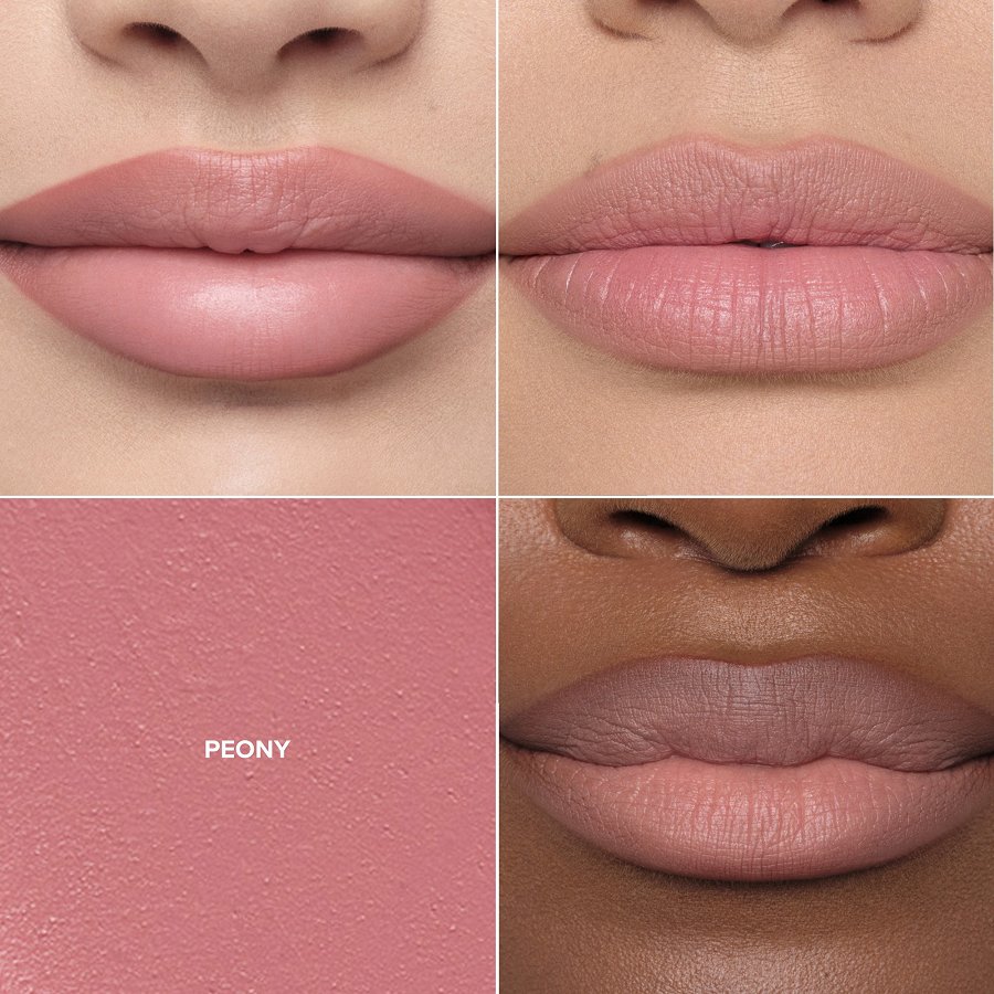 ANASTASIA BEVERLY HILLS matēta un satīna lūpu krāsa. Sākumā iezīmējiet augšlūpas izliekuma kontūru. Nokrāsojiet pārējo augšlūpu. Iezīmējiet apakšējās lūpas kontūru un aizpildiet to.