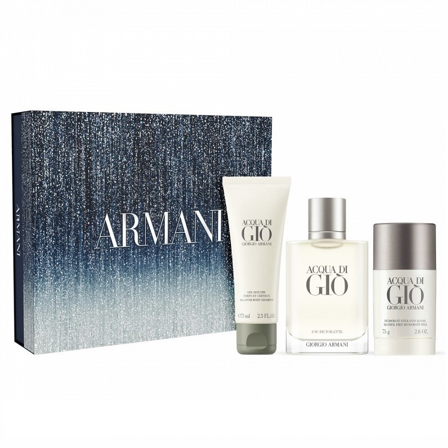 Šajā svētku sezonā “ARMANI” rada svinību garu un aicina jūs uz žilbinošām svinībām. “GIORGIO ARMANI Acqua di Giò” svētku dāvanu komplekts vīriešiem iepriecinās katru, kas novērtē svaigumu, stilu un harmoniju. Elegantā kastē atradīsiet tualetes ūdeni 100 ml, dušas želeju 75 ml un dezodorantu 75 ml tilpumā.