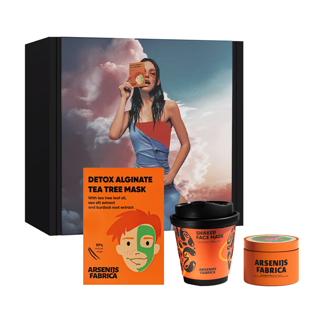 - Detox algināta maska (15 g) – dziļi attīra ādu, palīdz samazināt poras un atjauno veselīgu ādas izskatu.