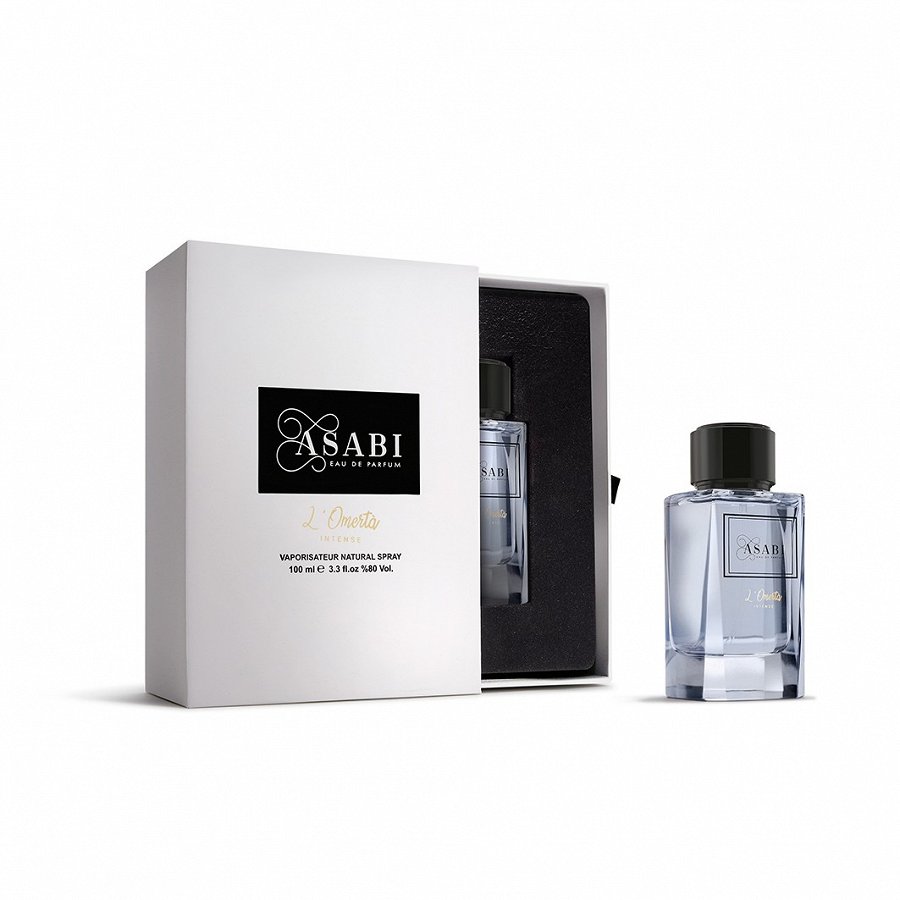 ASABI L'Omerta EDP Intense, aromāts ar neparastu kompozīciju, ietērpts elegantā caurspīdīga stikla flakonā. Jau pirmais aromāta piliens ir tik noslēpumains un izteiksmīgs, ka tas aicina baudīt smaržu ar visām maņām. Koksnes un citrusaugļu notis ieved juteklisku un intensīvu smaržu pasaulē, kur valda citrons un īriss. Rotaļīgais sandalkoka un ambras duets piešķir aromātam dziļumu un mistisku gaisotni.