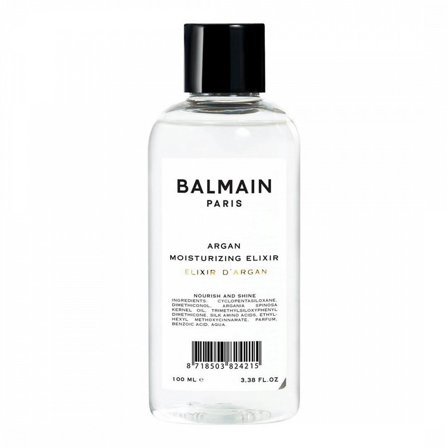Argana eļļa, kas iegūta no Marokas argana koka augļiem, ir dabiska pretnovecošanās sastāvdaļa, kas atjauno un aizsargā bojātus matus no apkārtējās vides ietekmes un dod bagātīgu spīdumu. BALMAIN Argan Elixir ir ārkārtīgi bagāts ar vitamīniem (īpaši E vitamīnu), un dabisko eļļu, minerālvielu un taukskābju maisījumu. Argana eļļa cīnās ar matu spurošanos un piešķir tiem izcilu spīdumu. Bagātināts ar zīda proteīna un argana eliksīra maisījumu un BALMAIN raksturīgo aromātu.