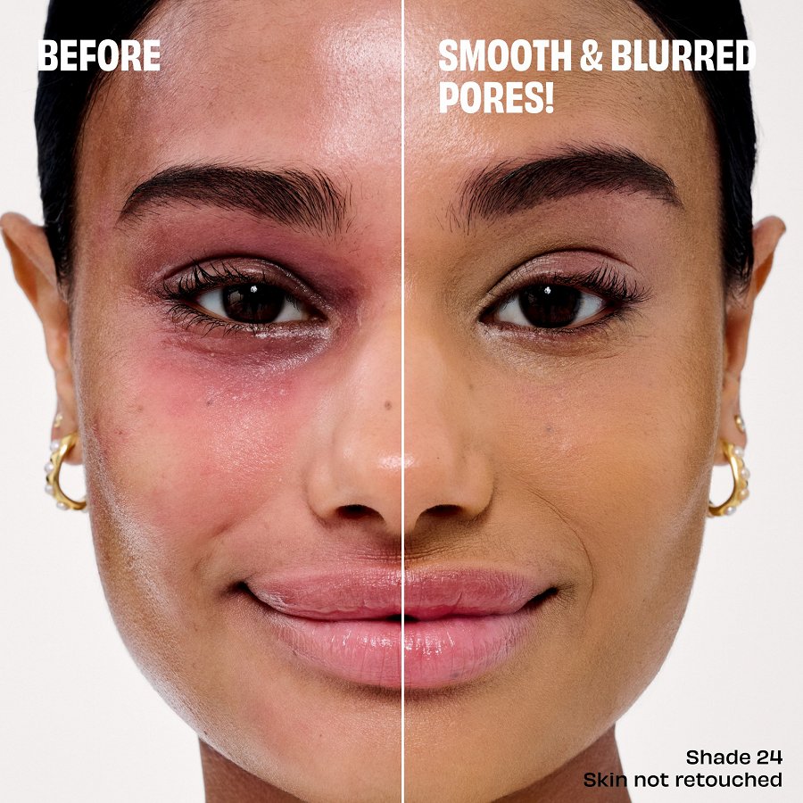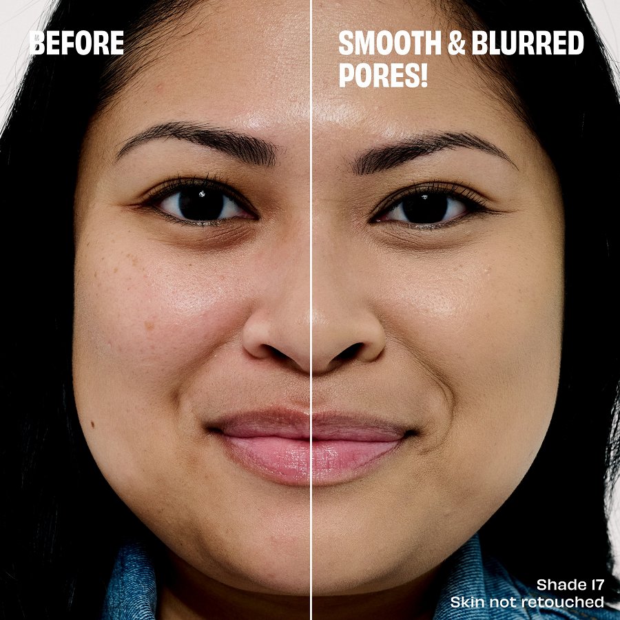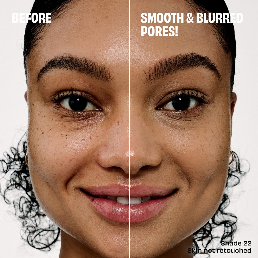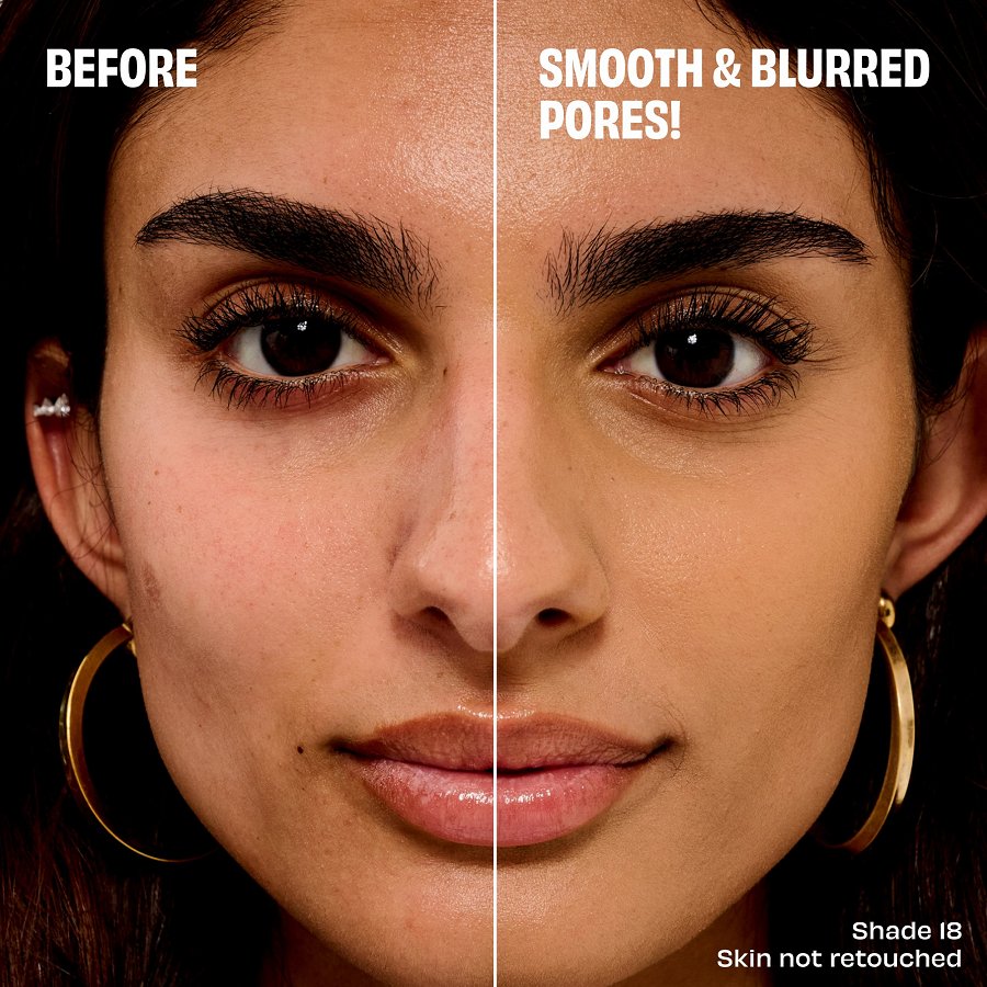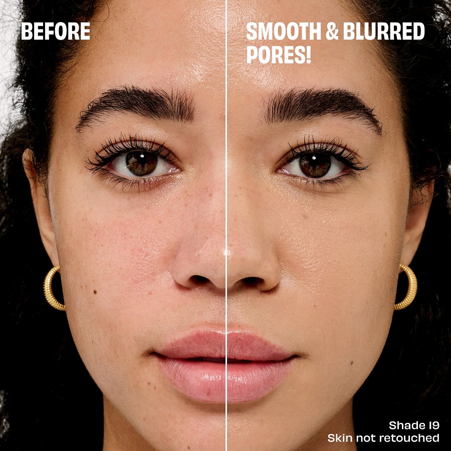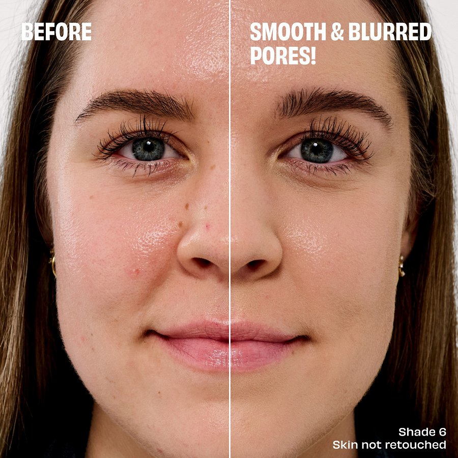 Tas acumirklī samazina poras un izlīdzina ādas tekstūru bez “savelšanās”, toņa zaudēšanas un izsmērēšanās, vienlaikus ļaujot ādai elpot.