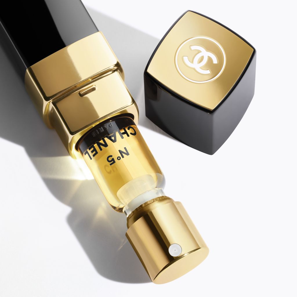 N°5 ir sievišķības būtība. Mītiska un mūžīga aldehīdu ziedu buķete. Radīts, izmantojot cēlākās izejvielas, tāpēc ekstrakts ir visvērtīgākā parfīma forma.