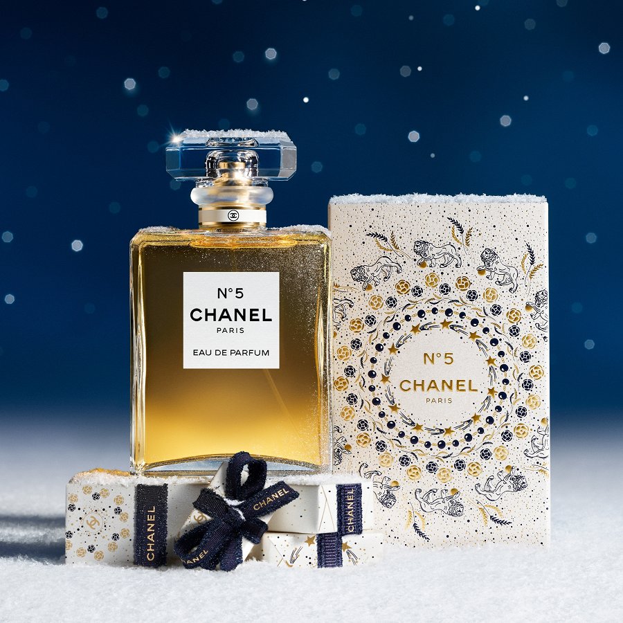 Svētku sezonas ietvaros 5 ikonisku CHANEL simbolu veidots zvaigznājs rotā jūsu dāvanas, piešķirot tām pozitīvu unikalitāti. N°5 parfimērijas ūdens ir pati sievišķības būtība. Nemainīgi aktuāls un leģendārs aromāts ar aldehīdu ziedu buķeti, kas pasniegts pērļu baltā ietvarā ar mirdzošiem zelta un sudrabkrāsas akcentiem.