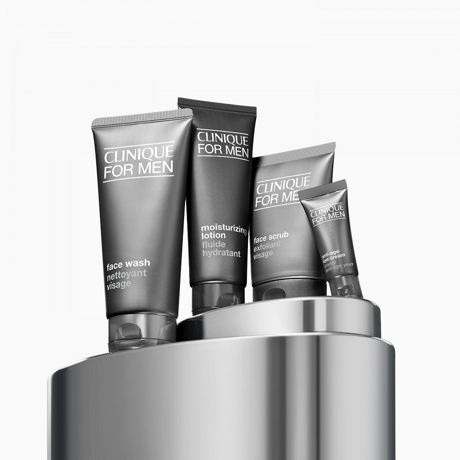 • CLINIQUE For Men™ sejas skrubis atdzīvina un izlīdzina ādu, padarot to gludu vieglākai skūšanai.