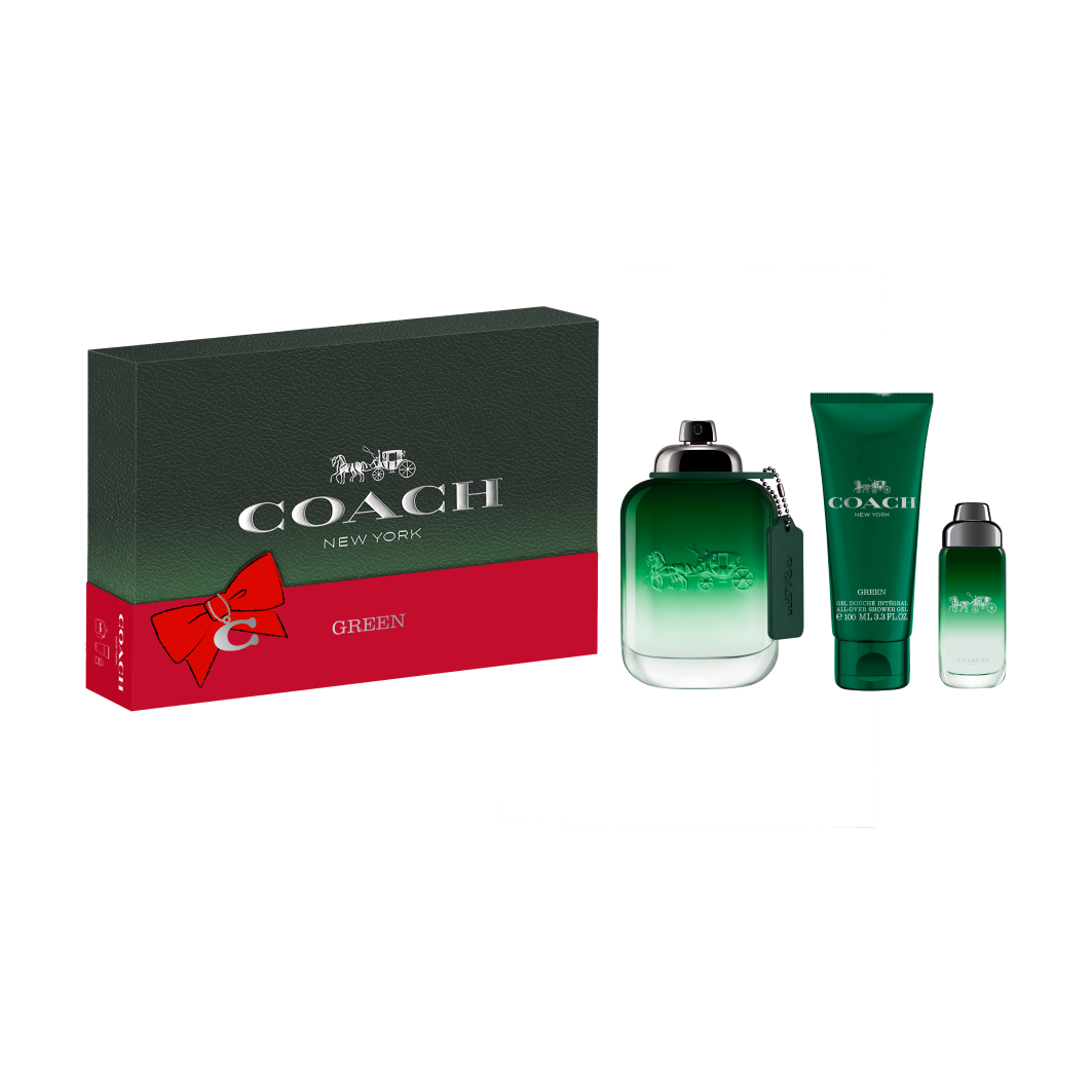 COACH MEN GREEN 100ML, 15ML: ALCOHOL DENAT(SD ALCOHOL 40B), PARFUM(FRAGRANCE), AQUA (WATER), LIMONENE, LINALOOL, BUTYL METHOXYDIBENZOYLMETHANE, ETHYLHEXYL METHOXYCINNAMATE, COUMARIN, CITRONELLOL, GERANIOL, BHT SHOWER GEL: AQUA (WATER), SODIUM LAURETH SULFATE, PARFUM (FRAGRANCE), COCAMIDOPROPYL BETAINE, LIMONENE, PEG-150 DISTEARATE, PEG-6 CAPRYLIC/CAPRIC GLYCERIDES, SODIUM CHLORIDE, COUMARIN, CITRIC ACID, LINALOOL, BENZYL SALICYLATE, CITRAL, MAGNESIUM NITRATE, METHYLCHLOROISOTHIAZOLINONE, MAGNESIUM CHLORIDE, METHYLISOTHIAZOLINONE.