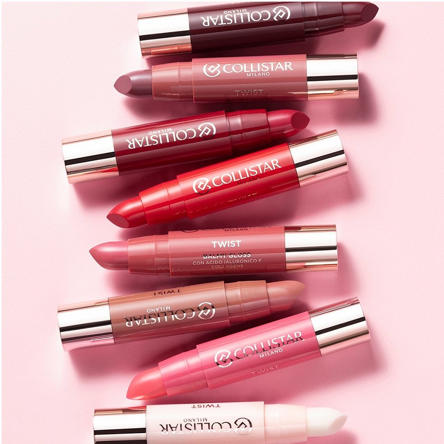 Ar “COLLISTAR Clean Research®” zinātnisko pieeju ir radīts jauns balzamveida lūpu spīdums “Twist” pilnībā pārstrādājamā flakonā un ar neticami daudzpusīgām īpašībām – viens līdzeklis, kas nodrošina četras priekšrocības. Sastāvs ir tikpat mitrinošs kā lūpu balzamam, mirdzošais tonis un spīdums ir kā lūpu spīdumam, un to iespējams uzklāt tikpat precīzi kā lūpu krāsu.