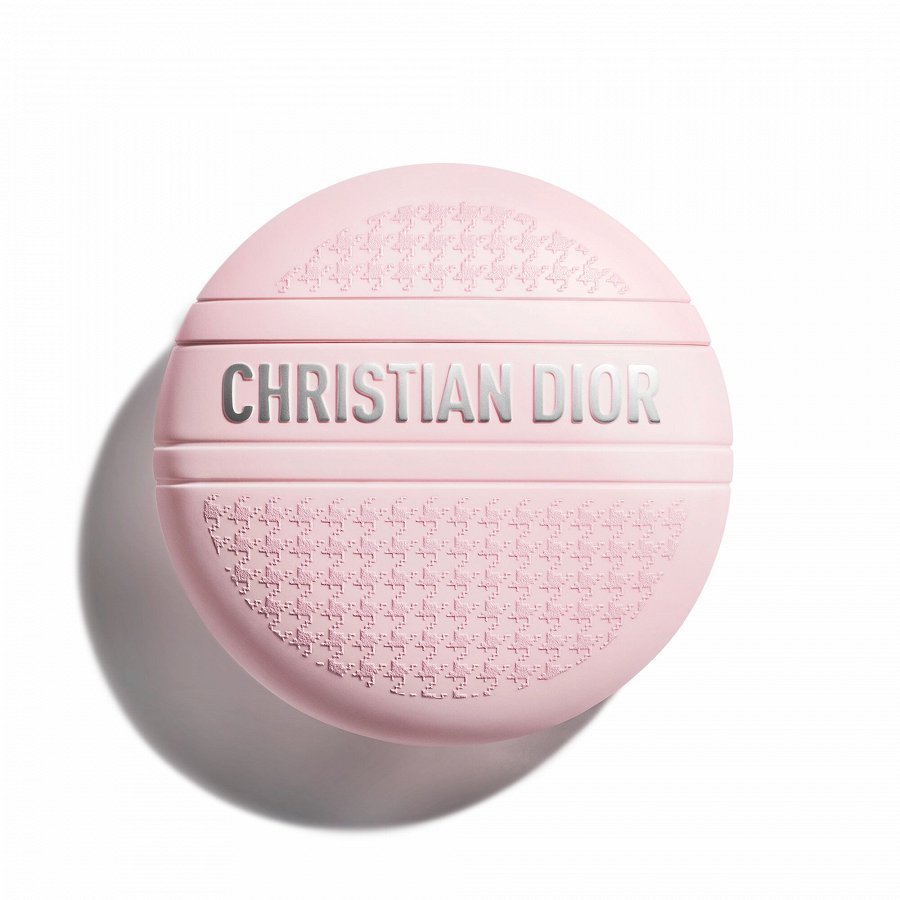 Apaļais, pārnēsājamais futrālis papildināts ar reljefu Miss Dior klasisko zosu kājiņu rakstu.