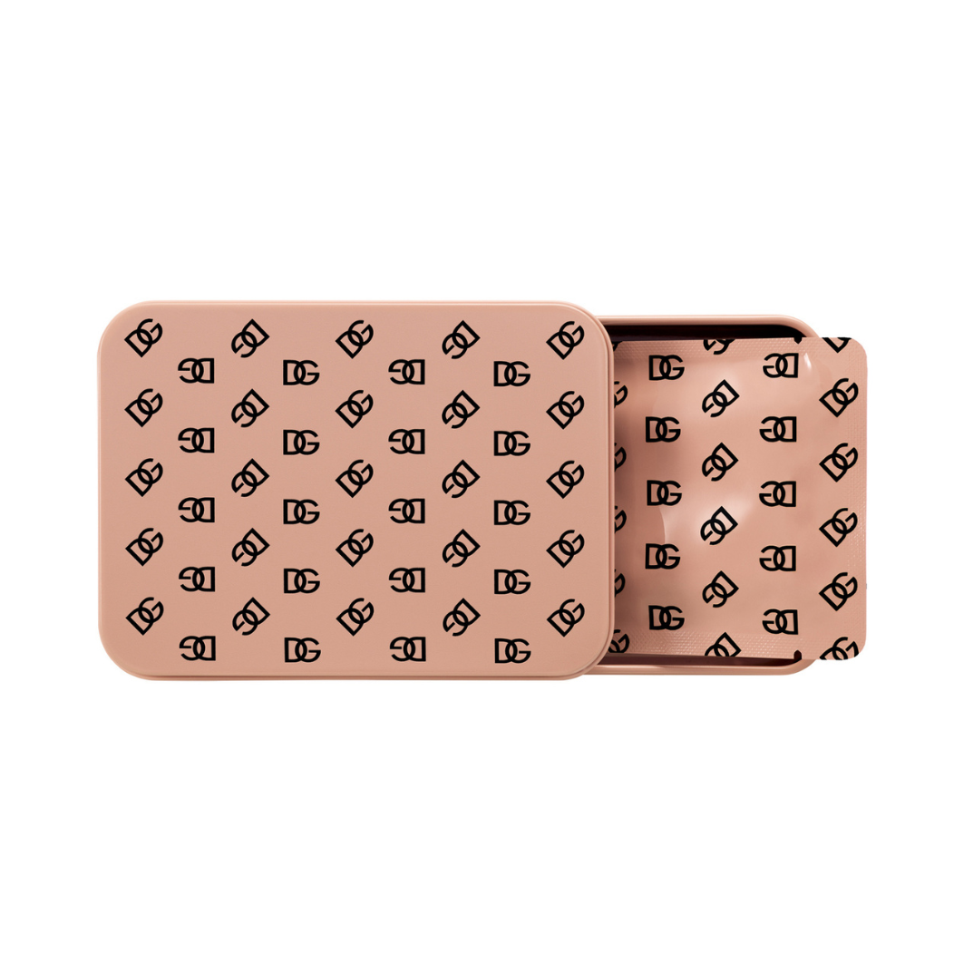 Plāksteri ir ievietoti skaistā nude-rozā DG monogrammas metāla kastītē, kurā ir 5 paciņas. Ideāls skaistumkopšanas aksesuārs, kas ir piemērots lietošanai kopā ar No-Puff Caffeine Eye Patches.