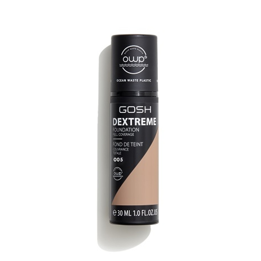 GOSH Dextreme Full Coverage noslēpj un samazina apsārtumus, smalkās grumbiņas un tumšos lokus ap acīm. Matēts satīna rezultāts ar vienmērīgu pārklājumu ir perfekts sākums jebkuram grimam. Nevainojama āda visas dienas garumā. Pielāgojas ādai un saplūst ar to. Viegli klājas. Pateicoties krēmā vienmērīgi izvietotajiem krāsas pigmentiem, to ir viegli klāt arī vairākās kārtās - “build up”. Izmanto arī kā konsīleri. Piemērots normālai, kā arī taukainai ādai. Bez smaržvielām. Vegānisks. Iepakojums ražots no okeāna atkritumu plastmasas (Ocean Waste Plastic – OWP).