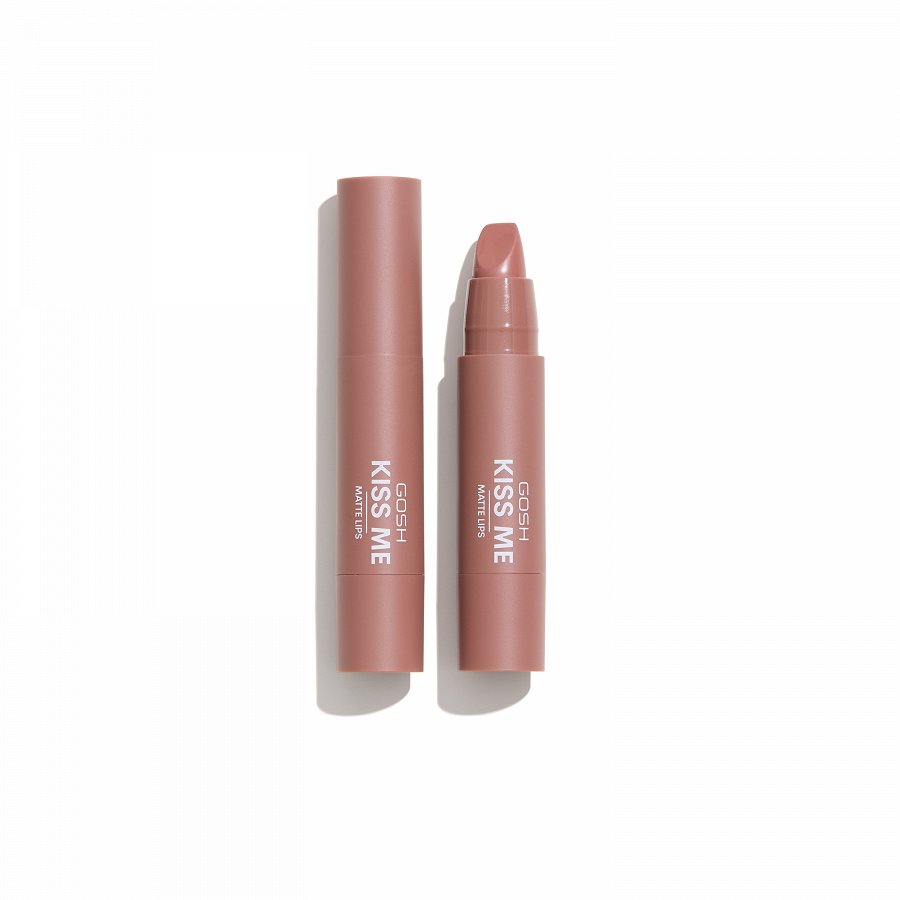 GOSH Kiss Me Matte Lips ir grezna lūpu krāsa, kas piešķir glamūrīgu izskatu un nodrošina komfortablu sajūtu uz lūpām visas dienas garumā. Tā viegli klājas, ir krēmveida tekstūra un augsta krāsas pigmentācija.
