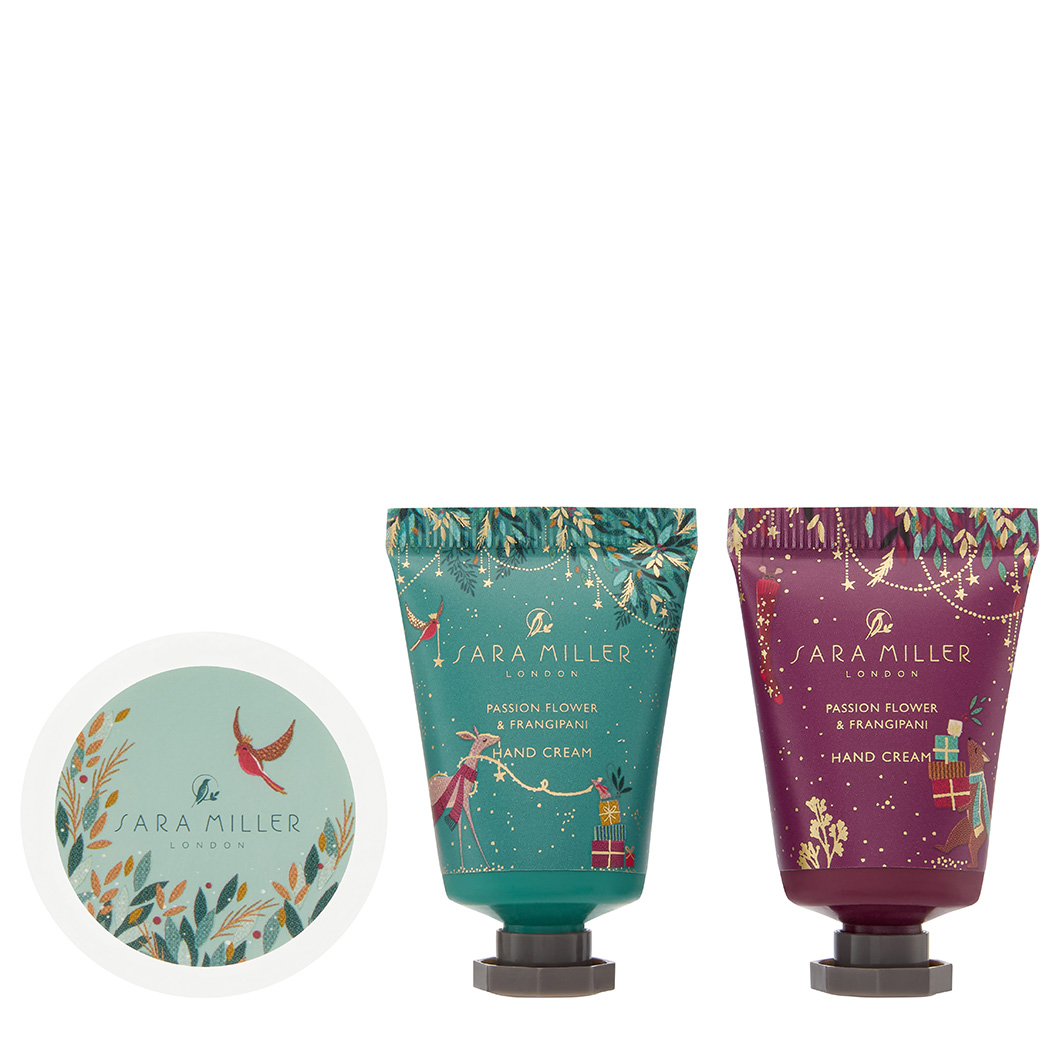 SARA MILLER PASSIONFLOWER & FRANGIPANI BATH FIZZER INGREDIENTS: SODIUM BICARBONATE, CITRIC ACID, SODIUM CARBONATE, ZEA MAYS (CORN) STARCH, SODIUM C14-16 OLEFIN SULFONATE, PEG-8, PARFUM (FRAGRANCE), SODIUM LAUROYL ISETHIONATE, LAURIC ACID, AQUA/WATER/EAU, LIMONENE, LINALOOL. SARA MILLER PASSIONFLOWER & FRANGIPANI HAND CREAM INGREDIENTS: AQUA/WATER/EAU, CAPRYLIC/CAPRIC TRIGLYCERIDE, BUTYROSPERMUM PARKII (SHEA) BUTTER, THEOBROMA CACAO (COCOA) SEED BUTTER, SORBITOL, CETEARYL GLUCOSIDE, PARFUM (FRAGRANCE), MANGIFERA INDICA (MANGO) SEED BUTTER, SORBITAN OLIVATE, PHENOXYETHANOL, COCOS NUCIFERA (COCONUT) OIL, TOCOPHERYL ACETATE (VITAMIN E), HYDROXYETHYL ACRYLATE/SODIUM ACRYLOYLDIMETHYL TAURATE COPOLYMER, ACRYLATES/C10-30 ALKYL ACRYLATE CROSSPOLYMER, GARDENIA TAITENSIS FLOWER EXTRACT, CAPRYLYL GLYCOL, PASSIFLORA CAERULEA (PASSION) FLOWER EXTRACT, ADANSONIA DIGITATA (BAOBAB) SEED EXTRACT, PLUMERIA ALBA (FRANGIPANI) FLOWER EXTRACT, HYALURONIC ACID, SODIUM HYDROXIDE, LIMONENE, LINALOOL, CITRONELLOL, GERANIOL, HYDROXYCITRONELLAL, CITRAL.