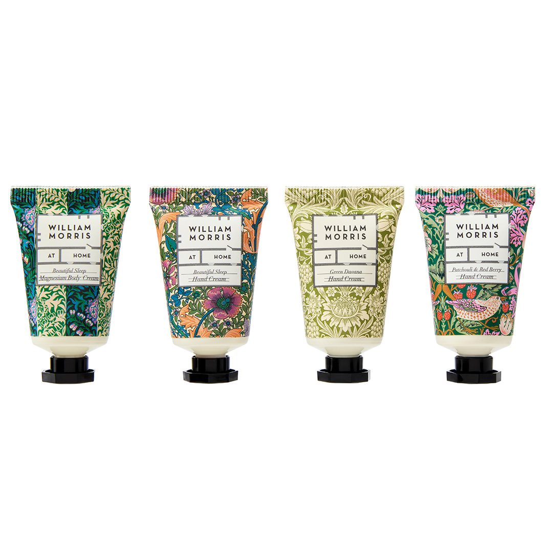 WILLIAM MORRIS AT HOME PATCHOULI & RED BERRY FOAM BATH INGREDIENTS: AQUA/WATER/EAU, COCAMIDOPROPYL BETAINE, GLYCERETH-26, PARFUM (FRAGRANCE), SODIUM LAUROYL SARCOSINATE, DISODIUM COCOAMPHODIACETATE, PHENOXYETHANOL, DISODIUM LAURETH SULFOSUCCINATE, PEG-120 METHYL GLUCOSE DIOLEATE, OLIVE OIL PEG-7 ESTERS, SODIUM CHLORIDE, CITRIC ACID, DISODIUM EDTA, CHLORPHENESIN, TOCOPHERYL ACETATE (VITAMIN E), BUTYLENE GLYCOL, CITRUS AURANTIUM DULCIS (ORANGE) FRUIT EXTRACT, FRAGARIA ANANASSA (STRAWBERRY) FRUIT EXTRACT, HYDROXYACETOPHENONE, POGOSTEMON CABLIN (PATCHOULI) OIL, PIPER NIGRUM (BLACK PEPPER) SEED OIL, ELETTARIA CARDAMOMUM (CARDAMOM) SEED OIL, LINALOOL, ALPHA - ISOMETHYL IONONE. WILLIAM MORRIS AT HOME PATCHOULI & RED BERRY HAND & BODY WASH INGREDIENTS: AQUA/WATER/EAU, COCAMIDOPROPYL BETAINE, GLYCERETH-26, PARFUM (FRAGRANCE), DISODIUM COCOAMPHODIACETATE, SODIUM LAUROYL SARCOSINATE, PHENOXYETHANOL, DISODIUM LAURETH SULFOSUCCINATE, SODIUM CHLORIDE, OLIVE OIL PEG-7 ESTERS, CITRIC ACID, PEG-120 METHYL GLUCOSE DIOLEATE, DISODIUM EDTA, CHLORPHENESIN, TOCOPHERYL ACETATE (VITAMIN E), BUTYLENE GLYCOL, CITRUS AURANTIUM DULCIS (ORANGE) FRUIT EXTRACT, FRAGARIA ANANASSA (STRAWBERRY) FRUIT EXTRACT, HYDROXYACETOPHENONE, POGOSTEMON CABLIN (PATCHOULI) OIL, PIPER NIGRUM (BLACK PEPPER) SEED OIL, ELETTARIA CARDAMOMUM (CARDAMOM) SEED OIL, LINALOOL, ALPHA - ISOMETHYL IONONE. WILLIAM MORRIS AT HOME PATCHOULI & RED BERRY HAND CREAM INGREDIENTS: AQUA/WATER/EAU, CETEARYL ALCOHOL, CAPRYLIC/CAPRIC TRIGLYCERIDE, GLYCERIN, CETEARETH-25, THEOBROMA CACAO (COCOA) SEED BUTTER, BUTYROSPERMUM PARKII (SHEA) BUTTER, SIMMONDSIA CHINENSIS (JOJOBA) SEED OIL, MACADAMIA TERNIFOLIA SEED OIL, PARFUM (FRAGRANCE), CETEARETH-6, PHENOXYETHANOL, ALLANTOIN, DISODIUM EDTA, TOCOPHERYL ACETATE (VITAMIN E), CHLORPHENESIN, BUTYLENE GLYCOL, CITRUS AURANTIUM DULCIS (ORANGE) FRUIT EXTRACT, FRAGARIA ANANASSA (STRAWBERRY) FRUIT EXTRACT, HYDROXYACETOPHENONE, POGOSTEMON CABLIN (PATCHOULI) OIL, PIPER NIGRUM (BLACK PEPPER) SEED OIL, ELETTARIA CARDAMOMUM (CARDAMOM) SEED OIL, LINALOOL, ALPHA-ISOMETHYL IONONE, GERANIOL, CITRONELLOL, LIMONENE. WILLIAM MORRIS AT HOME PATCHOULI & RED BERRY BATH SALTS INGREDIENTS: SODIUM CHLORIDE, PARFUM (FRAGRANCE), AQUA/WATER/EAU, BUTYLENE GLYCOL, CITRUS AURANTIUM DULCIS (ORANGE) FRUIT EXTRACT, FRAGARIA ANANASSA (STRAWBERRY) FRUIT EXTRACT, HYDROXYACETOPHENONE, POGOSTEMON CABLIN (PATCHOULI) OIL, PIPER NIGRUM (BLACK PEPPER) SEED OIL, ELETTARIA CARDAMOMUM (CARDAMOM) SEED OIL, LINALOOL, ALPHA - ISOMETHYL IONONE. WILLIAM MORRIS AT HOME BERGAMOT & VETIVER HAND CREAM INGREDIENTS: AQUA/WATER/EAU, CETEARYL ALCOHOL, CAPRYLIC/CAPRIC TRIGLYCERIDE, GLYCERIN, CETEARETH-25, GLYCERYL STEARATE, PEG-100 STEARATE, THEOBROMA CACAO (COCOA) SEED BUTTER, CAMELINA SATIVA (GOLD OF PLEASURE) SEED OIL, BUTYROSPERMUM PARKII (SHEA) BUTTER, SIMMONDSIA CHINENSIS (JOJOBA) SEED OIL, MACADAMIA TERNIFOLIA SEED OIL, PARFUM (FRAGRANCE), PHENOXYETHANOL, TOCOPHERYL ACETATE (VITAMIN E), ALLANTOIN, DISODIUM EDTA, CHLORPHENESIN, LILIUM CANDIDUM (LILY) FLOWER EXTRACT, BUTYLENE GLYCOL, HYDROXYACETOPHENONE, CITRUS AURANTIUM DULCIS (SWEET ORANGE) PEEL OIL, LITSEA CUBEBA FRUIT OIL, CITRUS LIMON (LEMON) PEEL OIL, CITRUS AURANTIUM (BITTER ORANGE) PEEL OIL EXPRESSED, CITRUS AURANTIUM BERGAMIA (BERGAMOT) PEEL OIL, CORIANDRUM SATIVUM (CORIANDER) FRUIT OIL, CITRUS AURANTIFOLIA (LIME) PEEL OIL, VETIVERIA ZIZANOIDES (VETIVER) ROOT OIL, COPAIFERA RETICULATA BALSAM OIL, CITRUS NOBILIS (MANDARIN) PEEL OIL, CUPRESSUS FUNEBRIS (CEDARWOOD) WOOD OIL, PIPER NIGRUM FRUIT (BLACK PEPPER) OIL, LIMONENE, LINALOOL, CITRAL. WILLIAM MORRIS AT HOME BERGAMOT & VETIVER BATH SALTS INGREDIENTS: SODIUM CHLORIDE, PARFUM (FRAGRANCE), AQUA/WATER/EAU, LILIUM CANDIDUM (LILY) FLOWER EXTRACT, BUTYLENE GLYCOL, HYDROXYACETOPHENONE, CITRUS AURANTIUM DULCIS (SWEET ORANGE) PEEL OIL, LITSEA CUBEBA FRUIT OIL, CITRUS LIMON (LEMON) PEEL OIL, CITRUS AURANTIUM (BITTER ORANGE) PEEL OIL EXPRESSED, CITRUS AURANTIUM BERGAMIA (BERGAMOT) PEEL OIL, CORIANDRUM SATIVUM (CORIANDER) FRUIT OIL, CITRUS AURANTIFOLIA (LIME) PEEL OIL, VETIVERIA ZIZANOIDES (VETIVER) ROOT OIL, COPAIFERA RETICULATA BALSAM OIL, CITRUS NOBILIS (MANDARIN) PEEL OIL, CUPRESSUS FUNEBRIS (CEDARWOOD) WOOD OIL, PIPER NIGRUM FRUIT (BLACK PEPPER) OIL, LIMONENE, LINALOOL, CITRAL. WILLIAM MORRIS AT HOME BERGAMOT & VETIVER BATH FIZZER (GREEN) INGREDIENTS: SODIUM BICARBONATE, CITRIC ACID, PARFUM (FRAGRANCE), GLYCERIN, AQUA/WATER/EAU, LILIUM CANDIDUM (LILY) FLOWER EXTRACT, BUTYLENE GLYCOL, HYDROXYACETOPHENONE, CITRUS AURANTIUM DULCIS (SWEET ORANGE) PEEL OIL, LITSEA CUBEBA FRUIT OIL, CITRUS LIMON (LEMON) PEEL OIL, CITRUS AURANTIUM (BITTER ORANGE) PEEL OIL EXPRESSED, CITRUS AURANTIUM BERGAMIA (BERGAMOT) PEEL OIL, CORIANDRUM SATIVUM (CORIANDER) FRUIT OIL, CITRUS AURANTIFOLIA (LIME) PEEL OIL, VETIVERIA ZIZANOIDES (VETIVER) ROOT OIL, COPAIFERA RETICULATA BALSAM OIL, CITRUS NOBILIS (MANDARIN) PEEL OIL, CUPRESSUS FUNEBRIS (CEDARWOOD) WOOD OIL, PIPER NIGRUM FRUIT (BLACK PEPPER) OIL, LIMONENE, LINALOOL, CITRAL. MAY CONTAIN +/-: CI 4209 (FD&C BLUE NO.1), CI 19140 (FD&C YELLOW NO.5), CI 17200 (D&C RED NO.33). WILLIAM MORRIS AT HOME CITRONELLA GRASS HAND & BODY WASH INGREDIENTS: AQUA/WATER/EAU, COCAMIDOPROPYL BETAINE, GLYCERETH-26, PARFUM (FRAGRANCE), DISODIUM COCOAMPHODIACETATE, INULIN (CHICORY ROOT), SODIUM LAUROYL SARCOSINATE, PHENOXYETHANOL, SODIUM CHLORIDE, CITRIC ACID, PEG-120 METHYL GLUCOSE DIOLEATE, DISODIUM EDTA, ALOE BARBADENSIS LEAF EXTRACT, CHLORPHENESIN, TOCOPHERYL ACETATE (VITAMIN E), SODIUM HYALURONATE, PELARGONIUM GRAVEOLENS (ROSE GERANIUM) OIL, CYMBOPOGON FLEXUOSUS (LEMONGRASS) HERB OIL, EUCALYPTUS GLOBULUS LEAF OIL, LINALOOL, LIMONENE, GERANIOL, CITRONELLOL. WILLIAM MORRIS AT HOME CITRONELLA GRASS HAND CREAM INGREDIENTS: AQUA/WATER/EAU, CETEARYL ALCOHOL, CAPRYLIC/CAPRIC TRIGLYCERIDE, GLYCERIN, CETEARETH-25, INULIN (CHICORY ROOT), *BUTYROSPERMUM PARKII (SHEA) BUTTER, **SIMMONDSIA CHINENSIS (JOJOBA) SEED OIL, **ADANSONIA DIGITATA (BAOBAB) SEED OIL, THEOBROMA CACAO (COCOA)