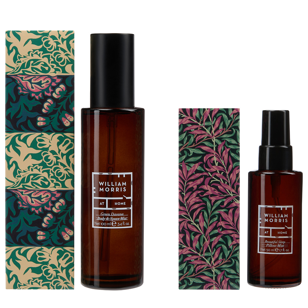 WILLIAM MORRIS AT HOME GREEN DAVANA BODY & SPACE MIST INGREDIENTS: AQUA/WATER/EAU, PEG-40 HYDROGENATED CASTOR OIL, ALCOHOL, PARFUM (FRAGRANCE), BUTYLENE GLYCOL, PHENOXYETHANOL, CHLORPHENESIN, LAVANDULA ANGUSTIFOLIA (LAVENDER) EXTRACT, HYDROXYACETOPHENONE, POGOSTEMON CABLIN (PATCHOULI) LEAF OIL, ROSMARINUS OFFICINALIS (ROSEMARY) LEAF OIL, ARTEMISIA PALLENS (DAVANA) FLOWER OIL, HYDROXYCITRONELLAL, LINALOOL. WILLIAM MORRIS AT HOME CITRONELLA GRASS RECOVERY BALM INGREDIENTS: AQUA/WATER/EAU, CETEARYL ALCOHOL, CAPRYLIC/CAPRIC TRIGLYCERIDE, GLYCERIN, CETEARETH-25, INULIN (CHICORY ROOT), *BUTYROSPERMUM PARKII (SHEA) BUTTER, **SIMMONDSIA CHINENSIS (JOJOBA) SEED OIL, **ADANSONIA DIGITATA (BAOBAB) SEED OIL, THEOBROMA CACAO (COCOA) SEED BUTTER, MACADAMIA TERNIFOLIA SEED OIL, PARFUM (FRAGRANCE), CETEARETH-6, PHENOXYETHANOL, CARBOMER, SODIUM HYALURONATE, ALOE BARBADENSIS LEAF EXTRACT, TOCOPHERYL ACETATE (VITAMIN E), ALLANTOIN, SODIUM HYDROXIDE, DISODIUM EDTA, CHLORPHENESIN, PELARGONIUM GRAVEOLENS (ROSE GERANIUM) OIL, CYMBOPOGON FLEXUOSUS (LEMONGRASS) HERB OIL, EUCALYPTUS GLOBULUS LEAF OIL, LINALOOL, LIMONENE, GERANIOL, CITRONELLOL, CITRAL, HYDROXYCITRONELLAL. *COSMOS NATURAL **COSMOS NATURAL & COLD PRESSED WILLIAM MORRIS AT HOME GREEN DAVANA HAIR MIST INGREDIENTS: AQUA/WATER/EAU, PEG-40 HYDROGENATED CASTOR OIL, ALCOHOL, PARFUM (FRAGRANCE), OLIVE OIL PEG-7 ESTERS, PHENOXYETHANOL, TOCOPHERYL ACETATE (VITAMIN E), NIACINAMIDE (VITAMIN B3), PANTHENOL (PRO-VITAMIN B5), GLYCERYL CAPRYLATE, GLYCERYL LAURATE, POGOSTEMON CABLIN (PATCHOULI) LEAF OIL, ROSMARINUS OFFICINALIS (ROSEMARY) LEAF OIL, ARTEMISIA PALLENS (DAVANA) FLOWER OIL, HYDROXYCITRONELLAL, LINALOOL. WILLIAM MORRIS AT HOME GREEN DAVANA BODY WASH INGREDIENTS: AQUA/WATER/EAU, COCAMIDOPROPYL BETAINE, GLYCERETH-26, PARFUM (FRAGRANCE), DISODIUM COCOAMPHODIACETATE, INULIN (CHICORY ROOT), SODIUM LAUROYL SARCOSINATE, PHENOXYETHANOL, SODIUM CHLORIDE, CITRIC ACID, PEG-120 METHYL GLUCOSE DIOLEATE, DISODIUM EDTA, ALOE BARBADENSIS LEAF EXTRACT, CHLORPHENESIN, TOCOPHERYL ACETATE (VITAMIN E), SODIUM HYALURONATE, POGOSTEMON CABLIN (PATCHOULI) LEAF OIL, ROSMARINUS OFFICINALIS (ROSEMARY) LEAF OIL, ARTEMISIA PALLENS (DAVANA) FLOWER OIL. WILLIAM MORRIS AT HOME BEAUTIFUL SLEEP PILLOW MIST AQUA/WATER/EAU, PEG-40 HYDROGENATED CASTOR OIL, ALCOHOL, PARFUM (FRAGRANCE), BUTYLENE GLYCOL, PHENOXYETHANOL, CHLORPHENESIN, LAVANDULA ANGUSTIFOLIA (LAVENDER) EXTRACT, HYDROXYACETOPHENONE, LAVANDULA HYBRIDA (LAVANDIN) OIL, JUNIPERUS MEXICANA (CEDAR) OIL, CORIANDRUM SATIVUM (CORIANDER) FRUIT OIL, VETIVERIA ZIZANOIDES (VETIVER) ROOT OIL, LAVANDULA ANGUSTIFOLIA (LAVENDER) OIL, DIPTERYX ODORATA (TONKA) BEAN EXTRACT, LINALOOL, LIMONENE, GERANIOL. WILLIAM MORRIS AT HOME BEAUTIFUL SLEEP BODY OIL INGREDIENTS: PRUNUS AMYGDALUS DULCIS (SWEET ALMOND) OIL, VITIS VINIFERA (GRAPE) SEED OIL, OLEA EUROPAEA (OLIVE) FRUIT OIL, PARFUM (FRAGRANCE), SIMMONDSIA CHINENSIS (JOJOBA) SEED OIL, MAGNESIUM CHLORIDE, TOCOPHERYL ACETATE (VITAMIN E), LAVANDULA HYBRIDA (LAVANDIN) OIL, JUNIPERUS MEXICANA (CEDAR) OIL, CORIANDRUM SATIVUM (CORIANDER) FRUIT OIL, VETIVERIA ZIZANOIDES (VETIVER) ROOT OIL, LAVANDULA ANGUSTIFOLIA (LAVENDER) OIL, DIPTERYX ODORATA (TONKA) BEAN EXTRACT, LINALOOL. WILLIAM MORRIS AT HOME PATCHOULI & RED BERRY HAND CREAM (STRAWBERRY THIEF) INGREDIENTS: AQUA/WATER/EAU, CETEARYL ALCOHOL, CAPRYLIC/CAPRIC TRIGLYCERIDE, GLYCERIN, CETEARETH-25, THEOBROMA CACAO (COCOA) SEED BUTTER, BUTYROSPERMUM PARKII (SHEA) BUTTER, SIMMONDSIA CHINENSIS (JOJOBA) SEED OIL, MACADAMIA TERNIFOLIA SEED OIL, PARFUM (FRAGRANCE), CETEARETH-6, PHENOXYETHANOL, ALLANTOIN, DISODIUM EDTA, TOCOPHERYL ACETATE (VITAMIN E), CHLORPHENESIN, BUTYLENE GLYCOL, CITRUS AURANTIUM DULCIS (ORANGE) FRUIT EXTRACT, FRAGARIA ANANASSA (STRAWBERRY) FRUIT EXTRACT, HYDROXYACETOPHENONE, POGOSTEMON CABLIN (PATCHOULI) OIL, PIPER NIGRUM (BLACK PEPPER) SEED OIL, ELETTARIA CARDAMOMUM (CARDAMOM) SEED OIL, LINALOOL, ALPHA-ISOMETHYL IONONE, GERANIOL, CITRONELLOL, LIMONENE. WILLIAM MORRIS AT HOME CLEMENTINE & CLOVE CANDLE PARAFFIN/VEGETABLE WAX BLEND AND PARFUM CONTAINS: EUGENOL, LIMONENE, CINNAMAL