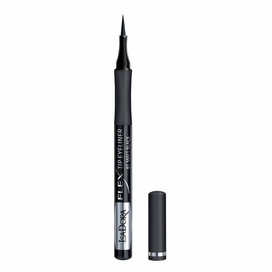 Isadora Flex Tip Eye Liner šķidrais acu flomāsterlaineris ar lokanu aplikatoru. Veido īpaši smalkas vai uzkrītoši biezas acu kontūrlīnijas, izmantojot mūsu patīkamo acu laineri ar lokano aplikatoru. Garais un lokanais flomāsterlainera aplikators nodrošina vienkāršu, vienmērīgu un ātru uzklāšanu un nevainojamu saķeri. Stingrāk piespiežot laineri, var viegli mainīt līnijas biezumu, nezaudējot kontroli. Sastāvs uz ūdens bāzes ir bagātīgi pigmentēts, ūdensizturīgs, ilgnoturīgs, kā arī neizsmērējas. Šis acu laineris ar lokano aplikatoru ir visparocīgākais šķidrais laineris, kas iekļauts mūsu pamatpiedāvājumā.