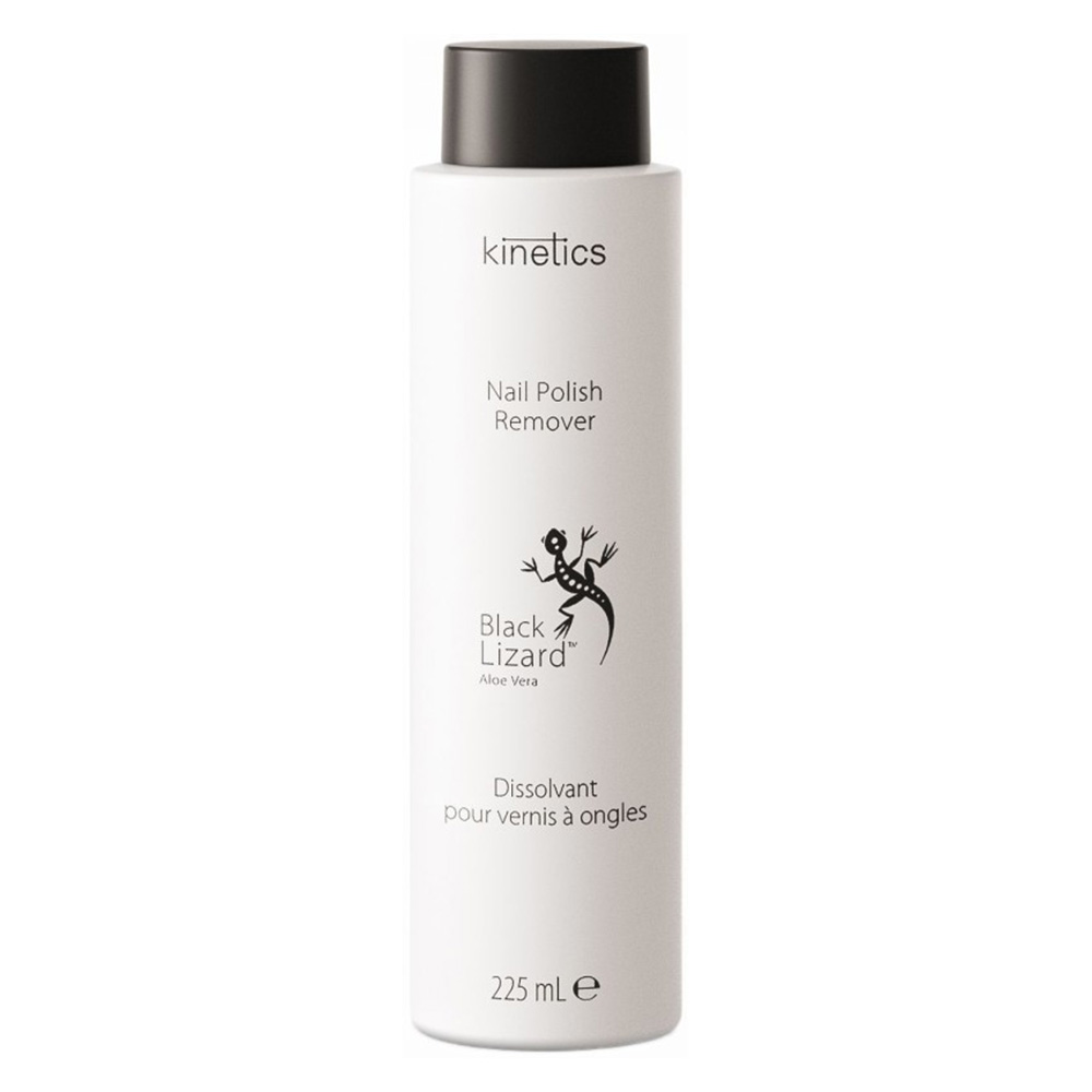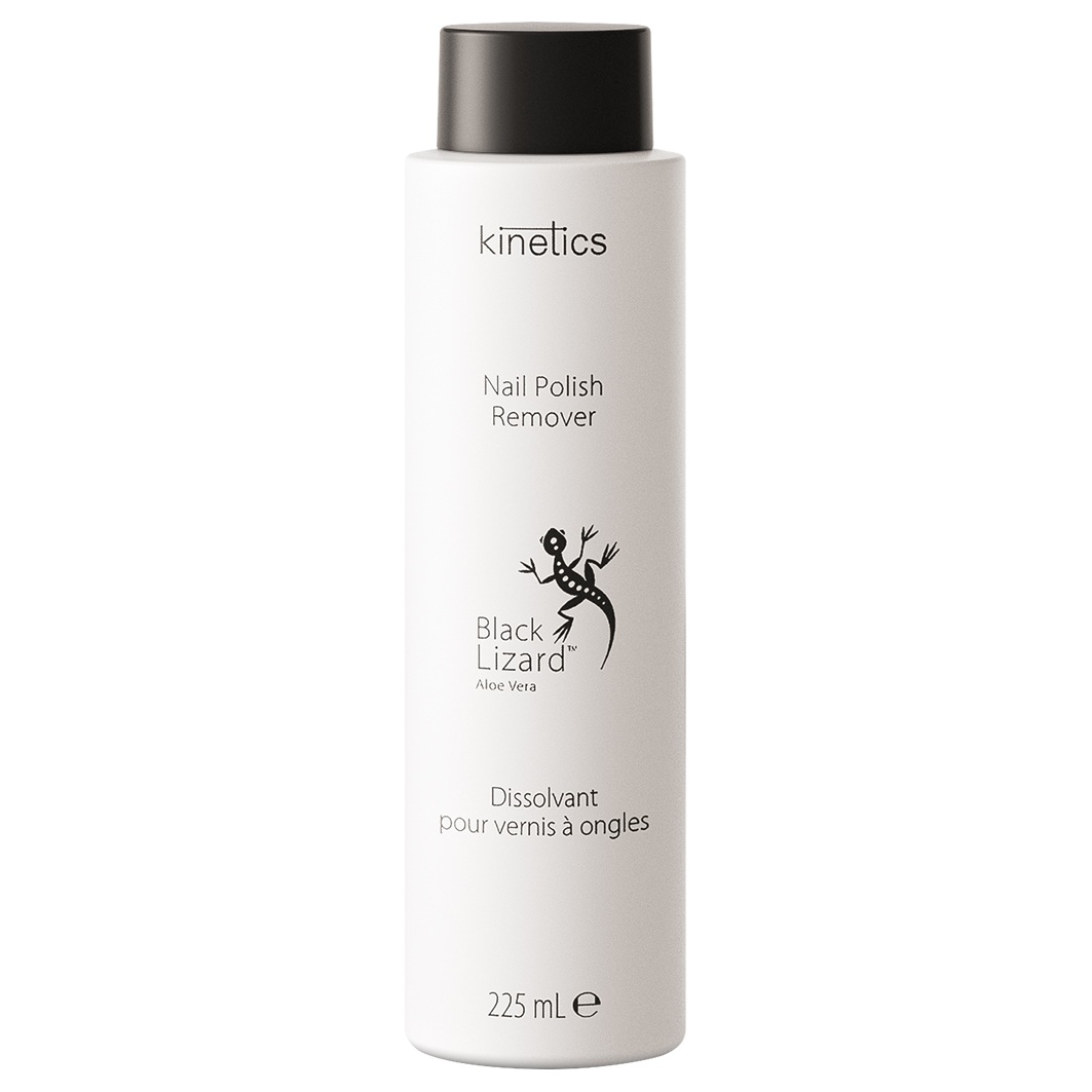 KINETICS Nail Polish Remover Black Lizard nagu lakas noņēmējs ar svaigu alvejas aromātu. Ātrai un vieglai nagu lakas noņemšanai. Piemērots tikai dabīgajiem nagiem.