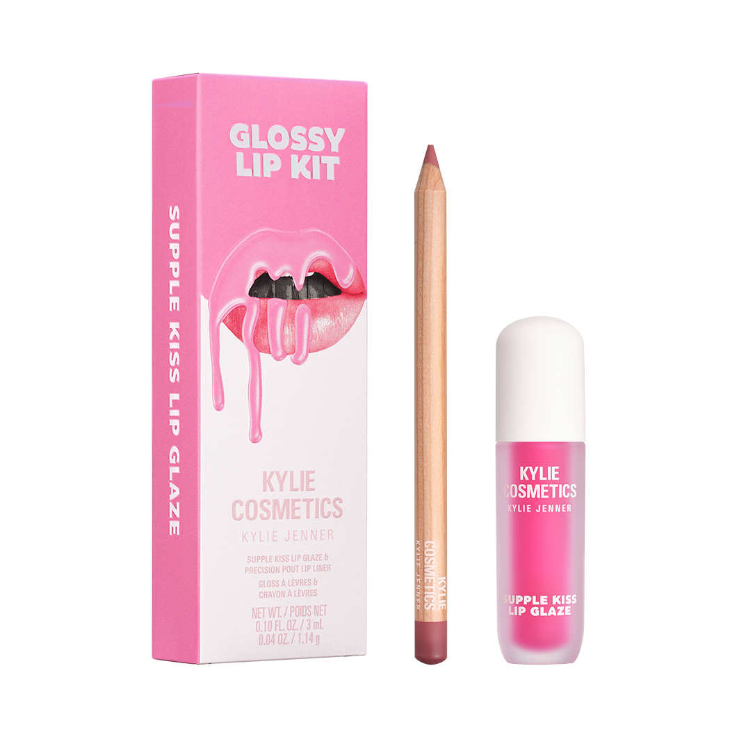 KYLIE COSMETICS Glossy Lip Kit ir īstā lūpu kopšanas izvēle izteiktām, mirdzošām lūpām ar noturīgu efektu. Komplektā ir Precision Pout Lip Liner kontūrzīmulis, īpaši precīzs koka lūpu zīmulis, kas nofiksējas uz lūpām, nodrošinot vienmērīgu un nesaraustītu uzklāšanas procesu, un Supple Kiss Lip Glaze lūpu spīdums ar maigu, mitrinošu formulu, kas sniedz spoguļa mirdzumu un caurspīdīgu pārklājumu. Dolce K ir pelēkbrūnā miesaskrāsā ar kontrastējoša toņa lūpu kontūrzīmuli.