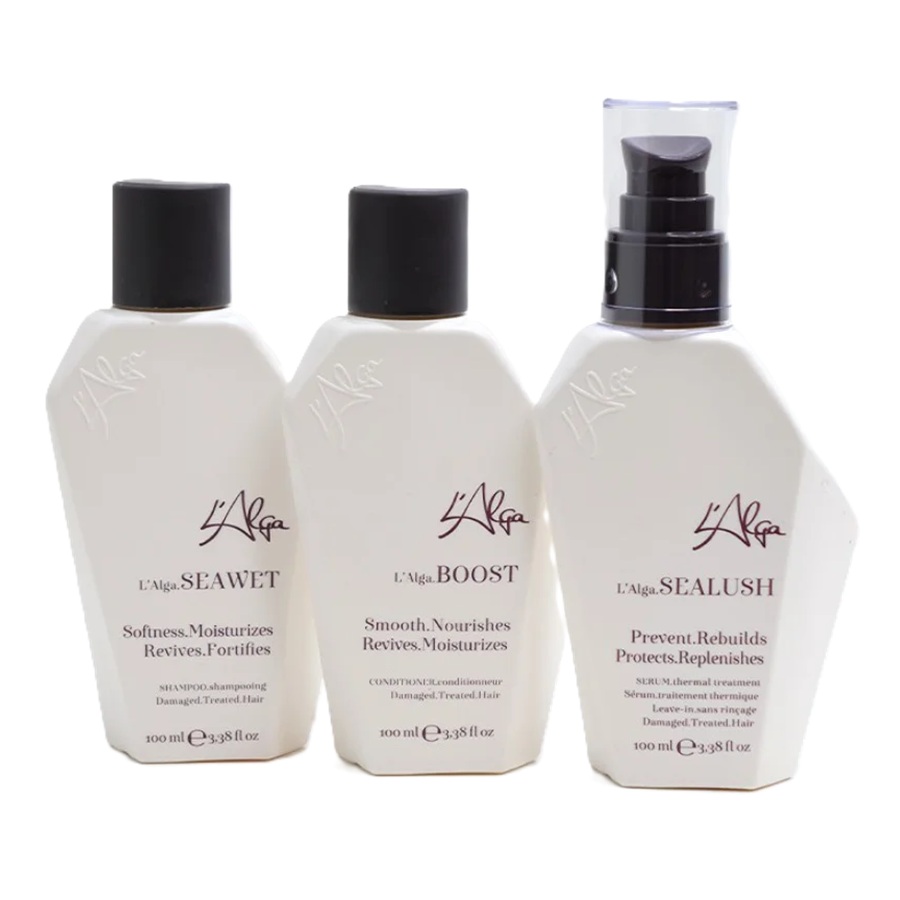 L'ALGA hit produkti no SEAMORE sērijas elegantā pērļu baltā kosmētikas somiņā ir jauka un vērtīga dāvana sev vai savai draudzenei!Komplektā ir atjaunojoši matu produkti, īpaši piemēroti bojātu matu kopšanai ar problemātiskiem matu galiem: L’Alga.SEAWET šampūns 100 ml; L’Alga.SEABOOST kondicionieris 100 ml; L’Alga.SEALUSH karstuma aizsardzības serums 100 ml