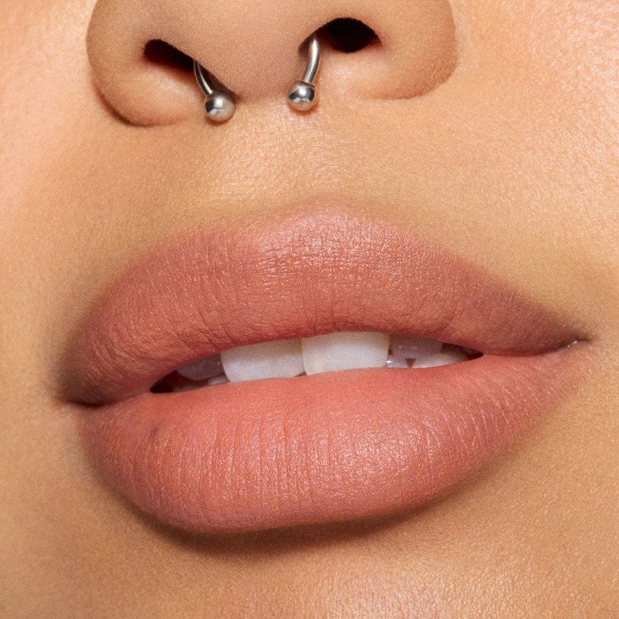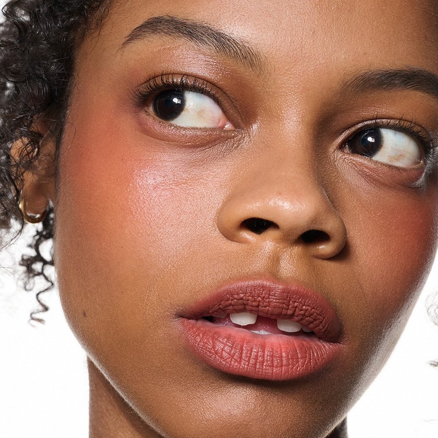 Dūmakaini matētas putas, kas nodrošina perfektu, 10 stundu noturīgu mitrinošu noturību uz lūpām un maigu krāsu mirdzumu uz vaigiem.