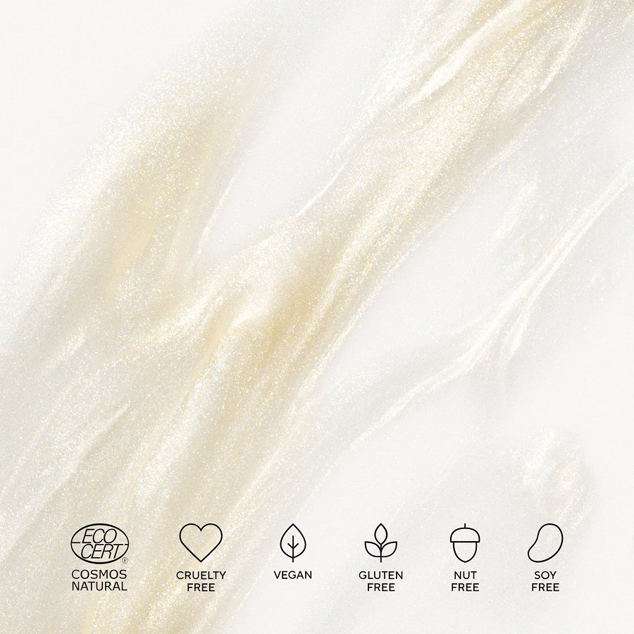 Kopjošā formula ar hialuronskābi liek ādai justies mitrinātai. Smalkie minerālu pigmenti piešķir starojošas ādas efektu. Nesatur eļļas.
