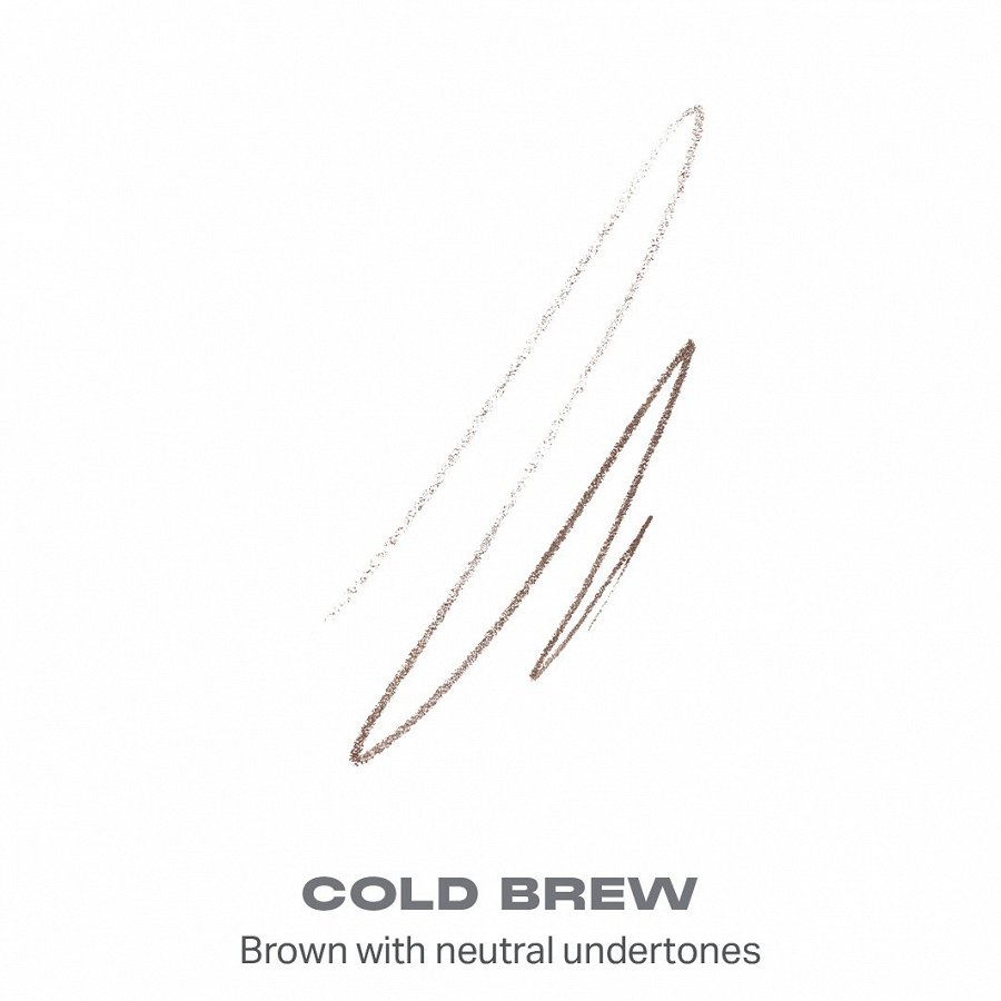 Divpusējs uzacu zīmulis ar ļoti smalku 0,9 mm galiņu un otiņu, ar kuru ievilkt vissmalkākos triepienus mata smalkumā.