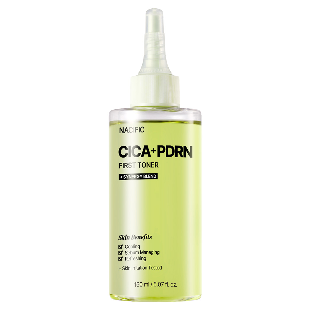 NACIFIC CICA PDRN First Toner toniks, kura sastāvā ir Āzijas centella, kam piemīt nomierinoša iedarbība, un no miežu dīgstiem iegūts PDRN, kas palīdz samazināt kairinājuma sajūtu un vienlaikus uztur ādas barjeru. Nomierinošais toniks viegli mitrina un palīdz atjaunot jutīgas, uz akni tendētas ādas līdzsvaru, lai tā būtu tīra un svaiga. Tas ir lielisks pirmais solis jebkurā ādas kopšanas rutīnā.