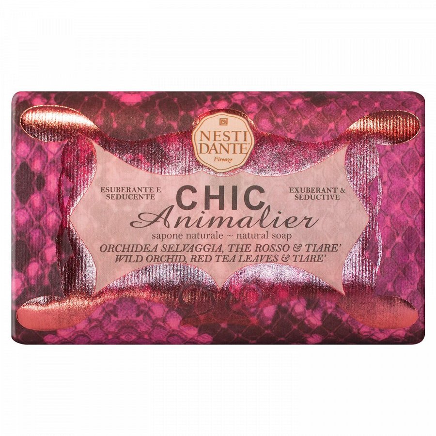 Orhidejas, sarkanā tējas koka lapu un hortenzijas ekstraktiem. Ziepju līnija Chic Animalier - Leopardam, tīģerim un pitonam ir atšķirīga medību stratēģija, bet mērķis ir viens -upuris. Šķiet bez upuriem šajā sezonā neiztikt. Ziepju līnija Chic Animalier – greznas ziepes , tiem, kas mīl sevi un kam patīk gūt baudu no sev apkārt esošajām lietām. Tiem, kas novērtē individualitāti un neparastas lietas, tiem, kas met izaicinājumu ikdienas rutīnai. Mode kā iedvesmas avots, jaunākās modes tendences, augstvērtīgas izejvielas un senas itāļu rūpnīcas tradīcijas – tas viss ir sajaucies šajās greznajās ziepēs.