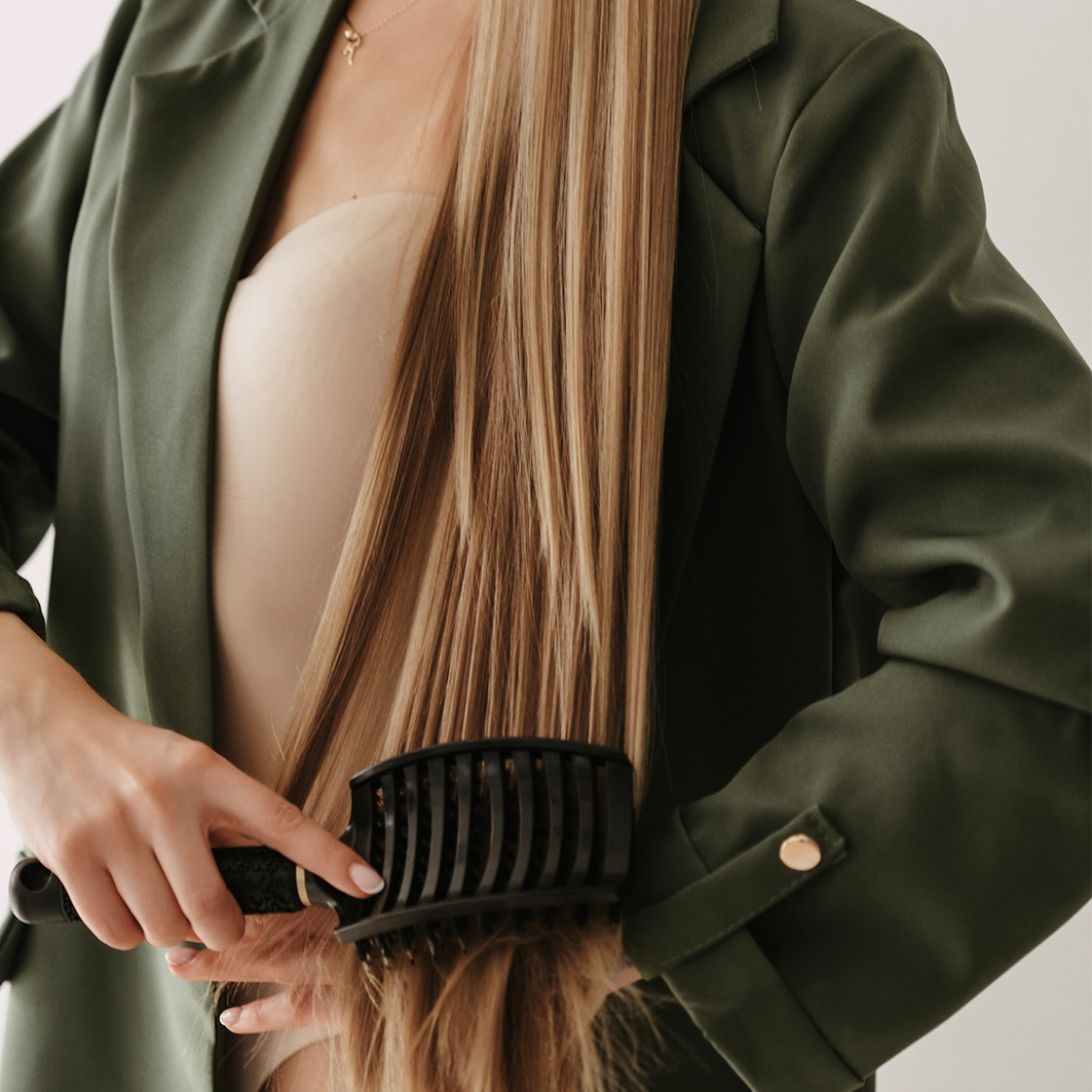 Ķemmējiet sākot no matu galiem, virzoties pie matu saknēm. Ķemme ir speciāli veidota tā, lai to var izmantot arī matu žāvēšanas laikā, lai gaiss, kas nāk no sildierīces spētu pūst cauri ķemmei.