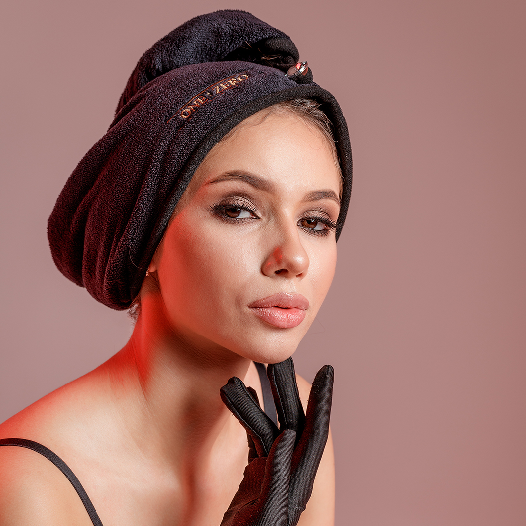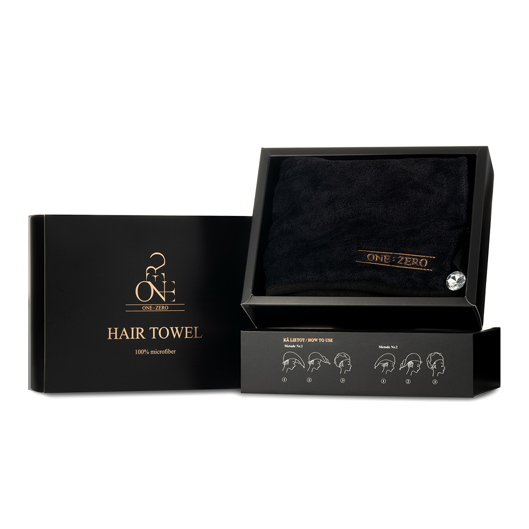 ONE:ZERO Hair Towel With Crystal Button Dvielis ar mazgāšanas maisiņu un kristāla pogu