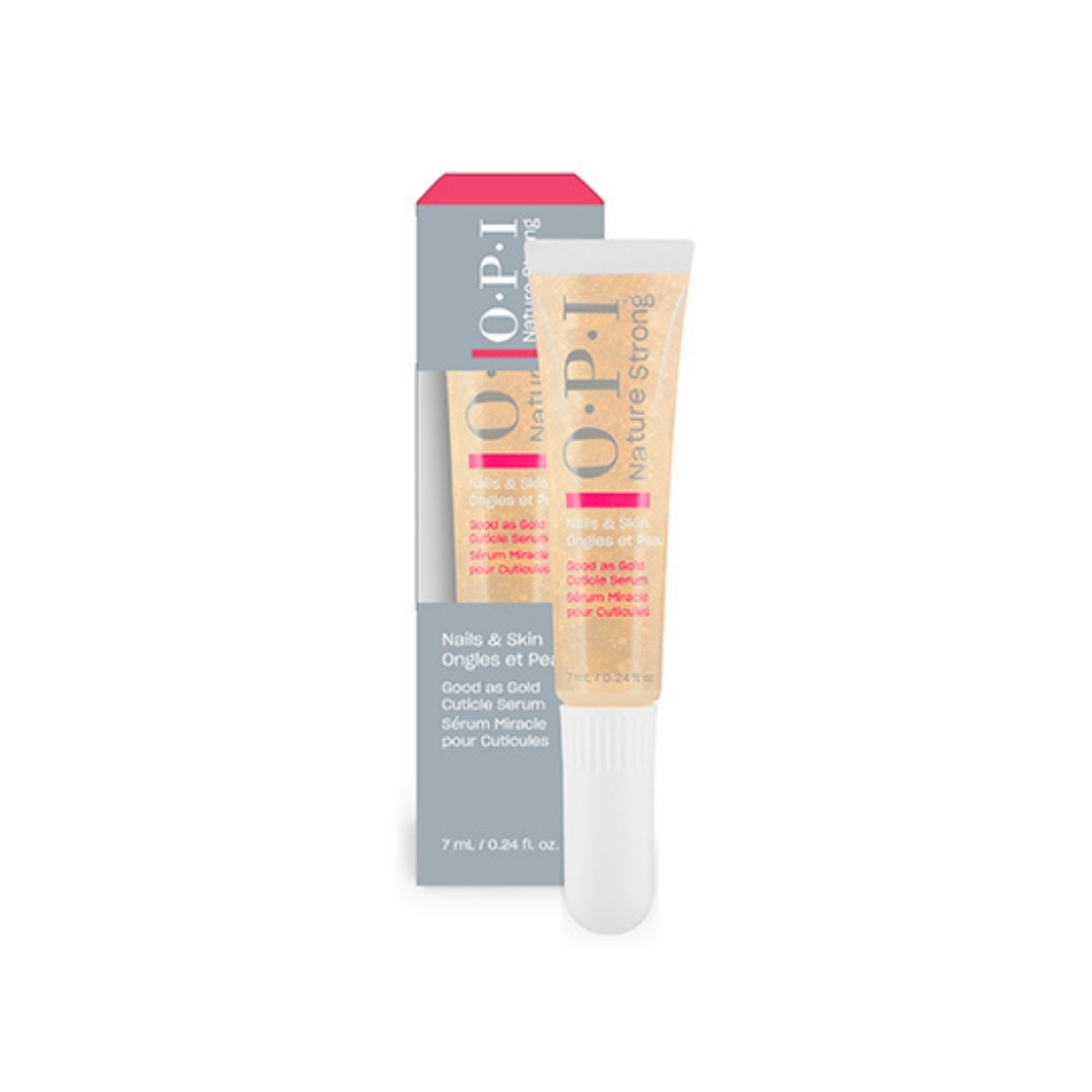 OPI Nails&Skin Good As Gold Cuticle Serum ātri absorbējošs gēlveida kutikulas serums ar zelta pārslām. Nodrošina tūlītēju mitrināšanu, palīdz mīkstināt sausas kutikulas. Bagātināts ar glicerīnu, kas nomierina un mīkstina ādu. OPI MoodBloom™ aromāta tehnoloģija. Piemērots līdzņemšanai.