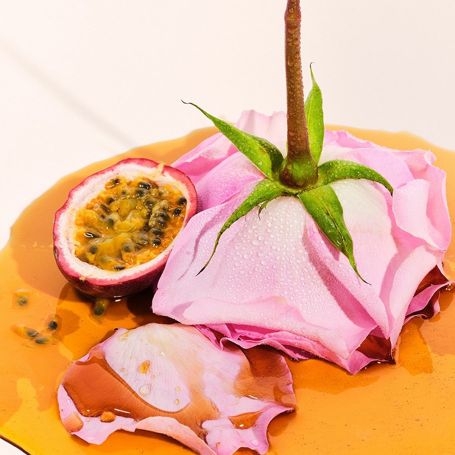 Augšējās notis: pasiflora, sārtie pipari.