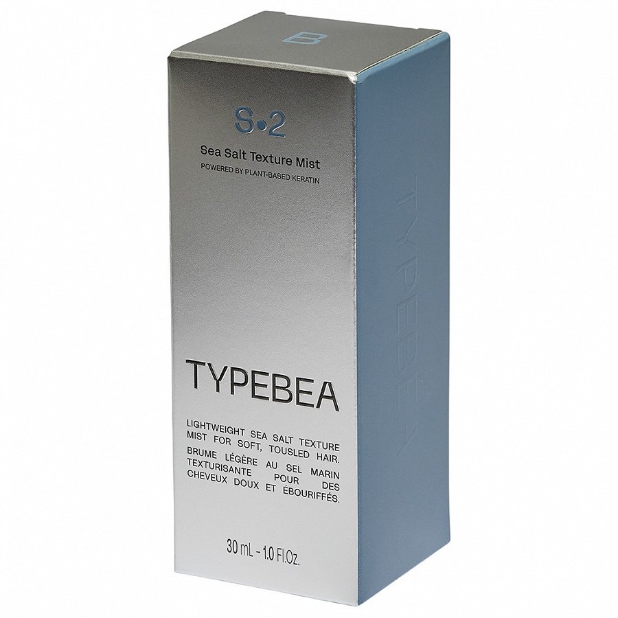 Šis TYPEBEA S2 Sea Salt Texture Mist izsmidzināmais jūras sāls līdzeklis hidratē matus, tam ir klīniski pierādīta iedarbība, piesātinot matus ar augu izcelsmes keratīnu, acīmredzami stiprinot matus un uzlabojot to izskatu, turklāt tas nodrošina bezrūpīgu pludmales frizūras tekstūru. Nevainojami nekārtīgai frizūrai ar sajūtamu maigumu un viļņiem.